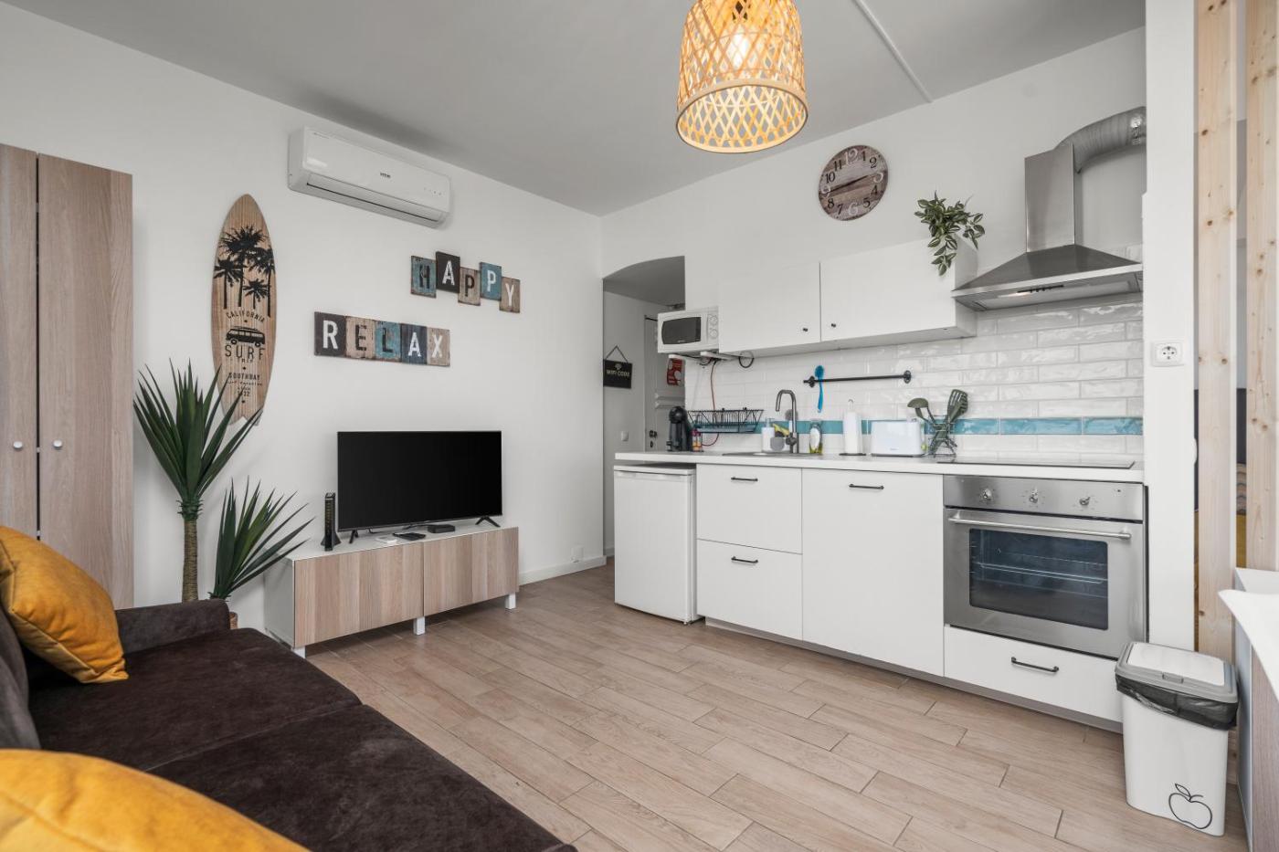 Este apartamento com ar condicionado tem 1 quarto, uma sala de estar, uma cozinha totalmente equipada com máquina de lavar louça e máquina de café, e 1 casa de banho com chuveiro e produtos de higiene pessoal gratuitos. Toalhas e roupa de cama são providenciadas neste apartamento.