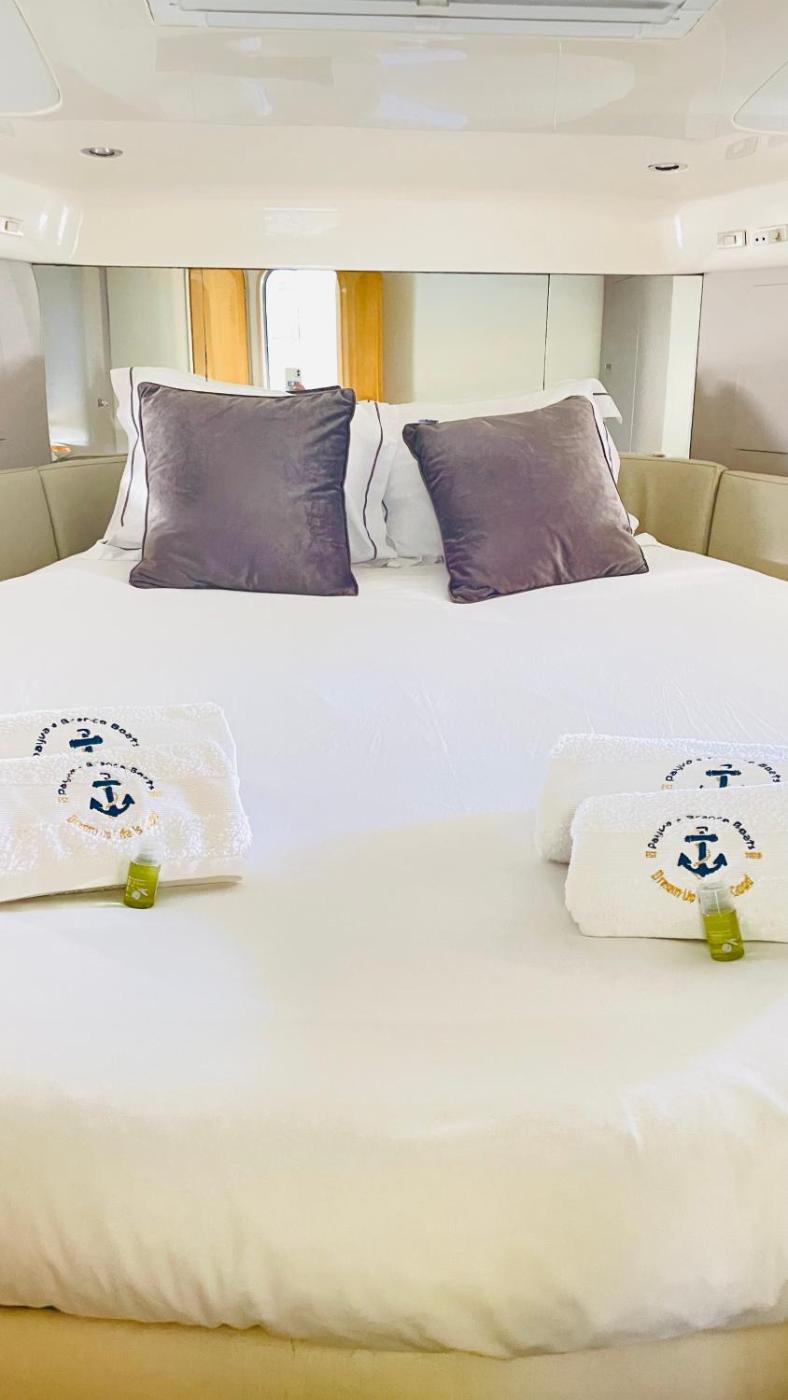 Este barco com ar condicionado tem 2 quartos, uma sala de estar, uma cozinha totalmente equipada com frigorífico e máquina de café, e 2 casas de banho com chuveiro e produtos de higiene pessoal gratuitos. Toalhas e roupa de cama são providenciadas neste barco.