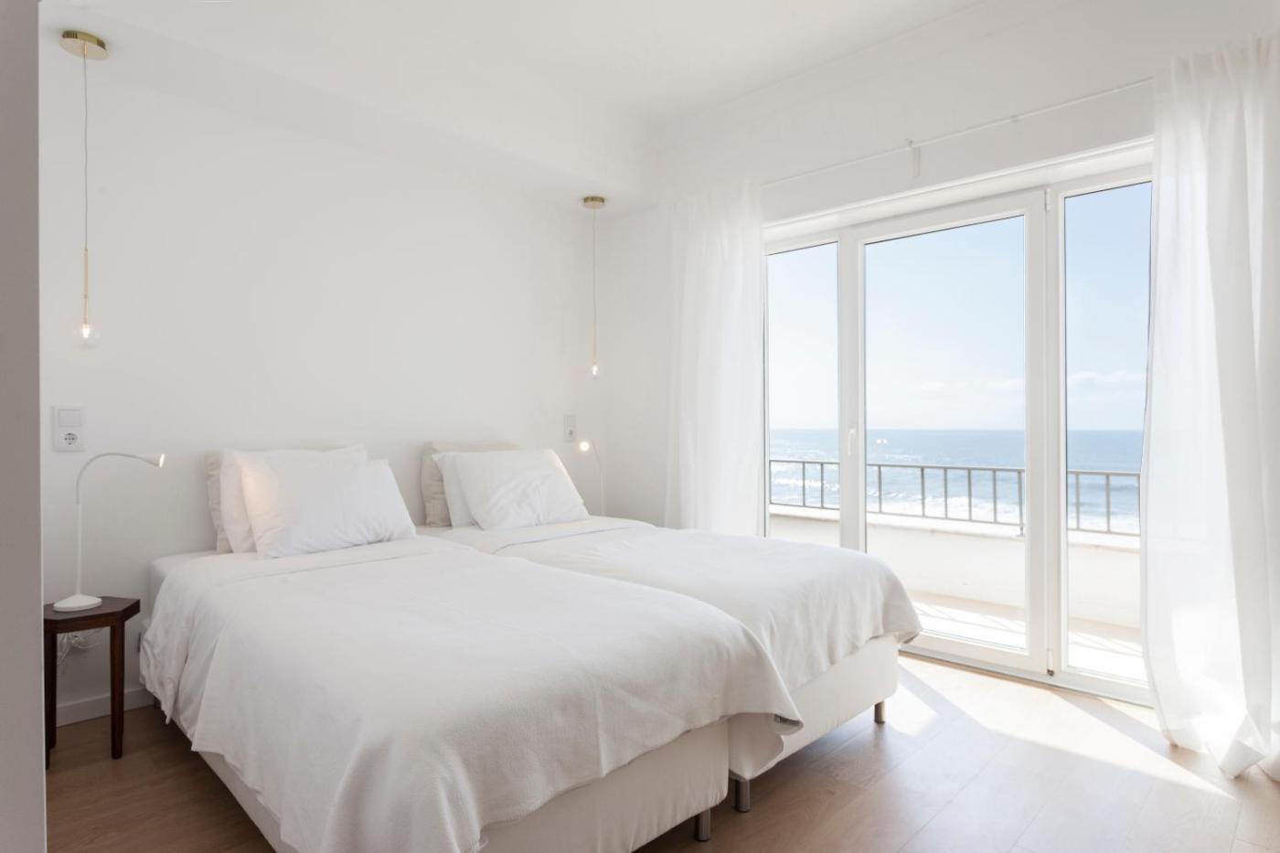 Quarto Twin com Vista Mar. Localizado no piso intermédio (1º piso), este quarto tem uma varanda com vistas panorâmicas do oceano. A unidade apresenta 2 camas individuais e uma casa de banho privativa. ;