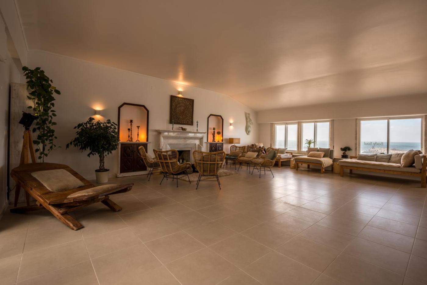 Sandhi House - Yoga & Wellness localiza-se na Ericeira e dispõe de acomodações em frente à praia, a 2 minutos a pé de Praia dos Pescadores, e fornece várias comodidades, incluindo um salão partilhado, um terraço e um restaurante. O alojamento encontra-se a 25 km de Palácio Nacional, a 26 km de Quinta da Regaleira e a 46 km de Gare do Oriente. Esta casa de hóspedes também apresenta acesso Wi-Fi gratuito, bem como serviço de transfer do aeroporto por um custo adicional.