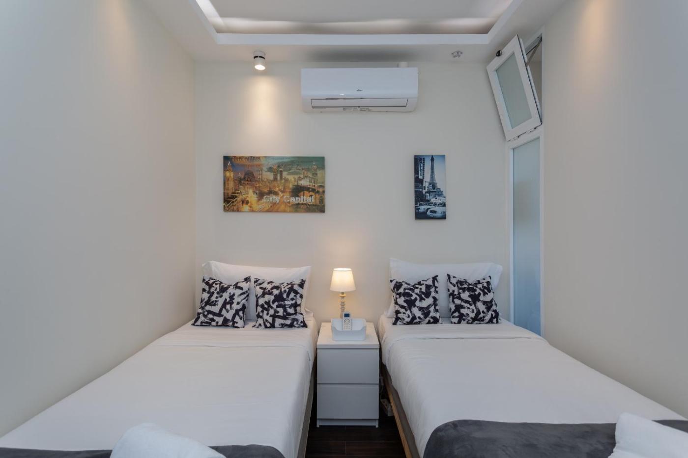 Este apartamento com ar condicionado tem 2 quartos, 2 casas de banho com um secador de cabelo, e uma sala de estar. Toalhas e roupa de cama são providenciadas neste apartamento.