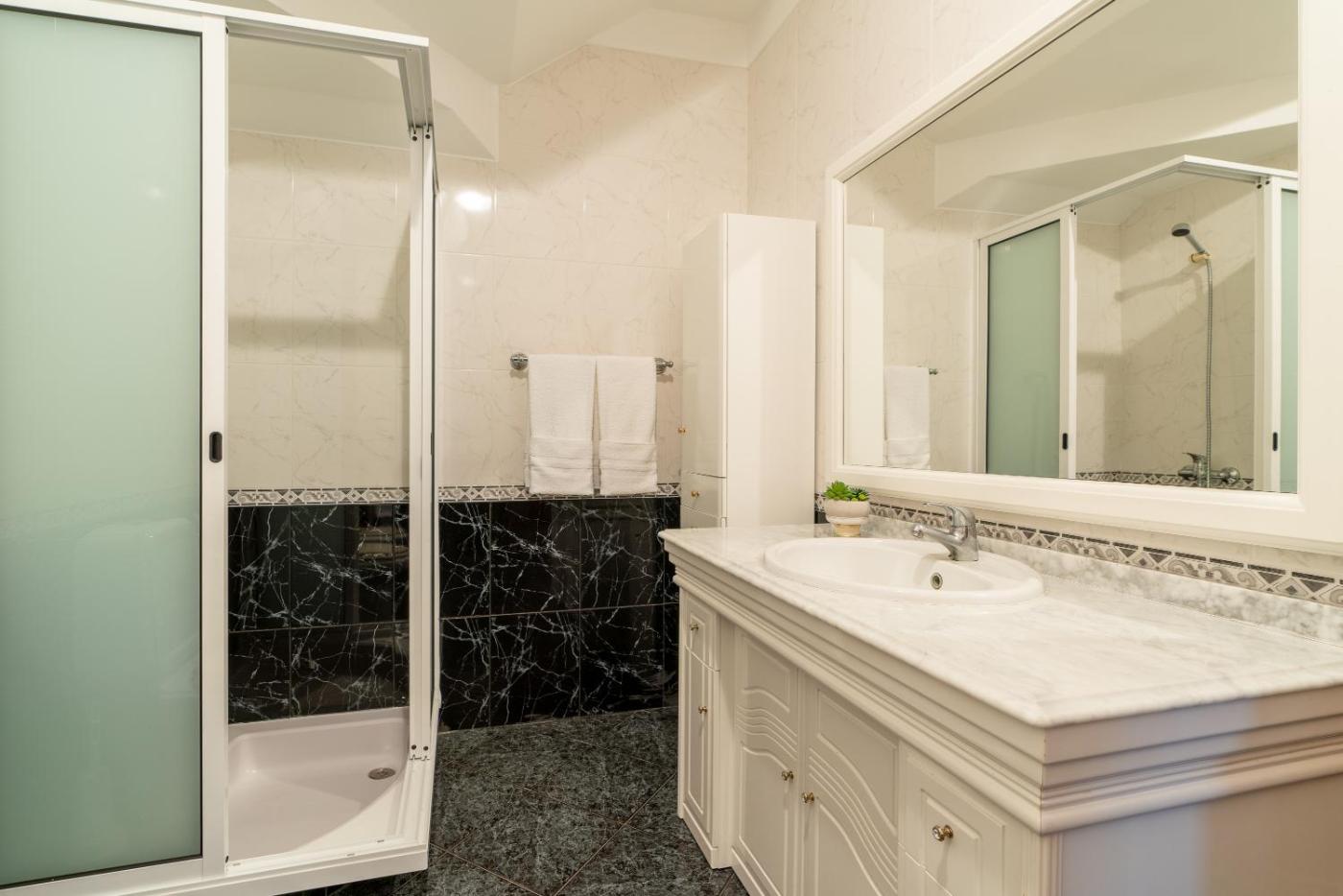 Esta casa de férias com uma varanda e vista da montanha apresenta 3 quartos, uma sala de estar, uma televisão de ecrã plano, uma cozinha equipada e 4 casas de banho com bidé e chuveiro.