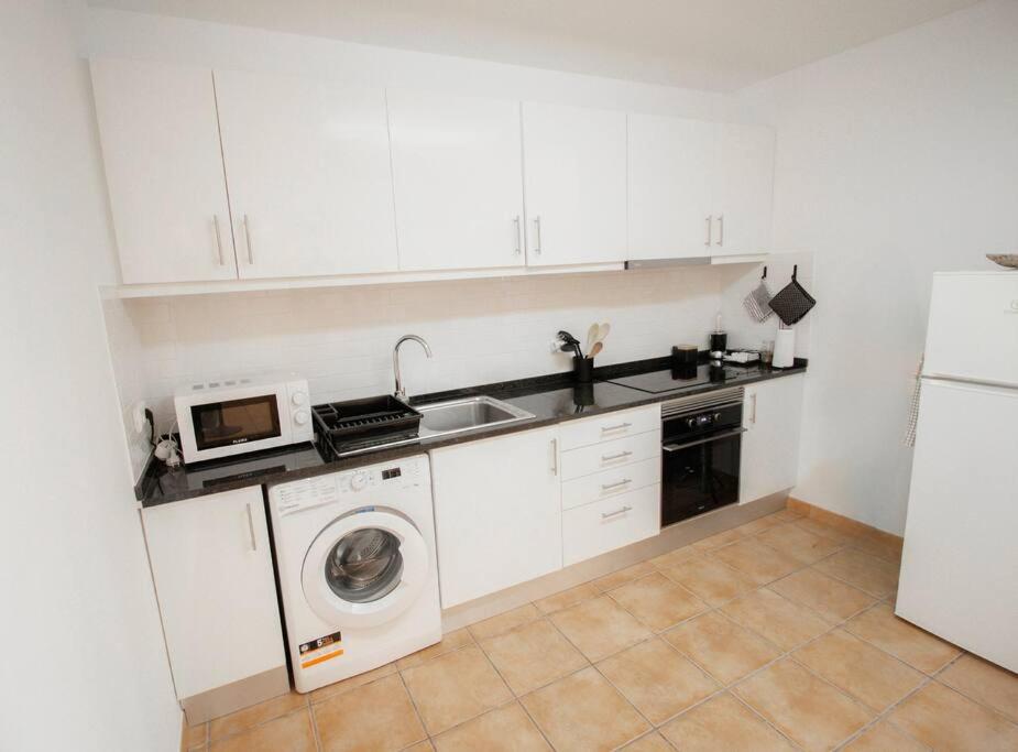 Villa com 2 Quartos. The well-fitted kitchen features a stovetop, a refrigerator, an oven and a microwave. This villa provides a washing machine, a flat-screen TV and garden views. The unit offers 3 beds.