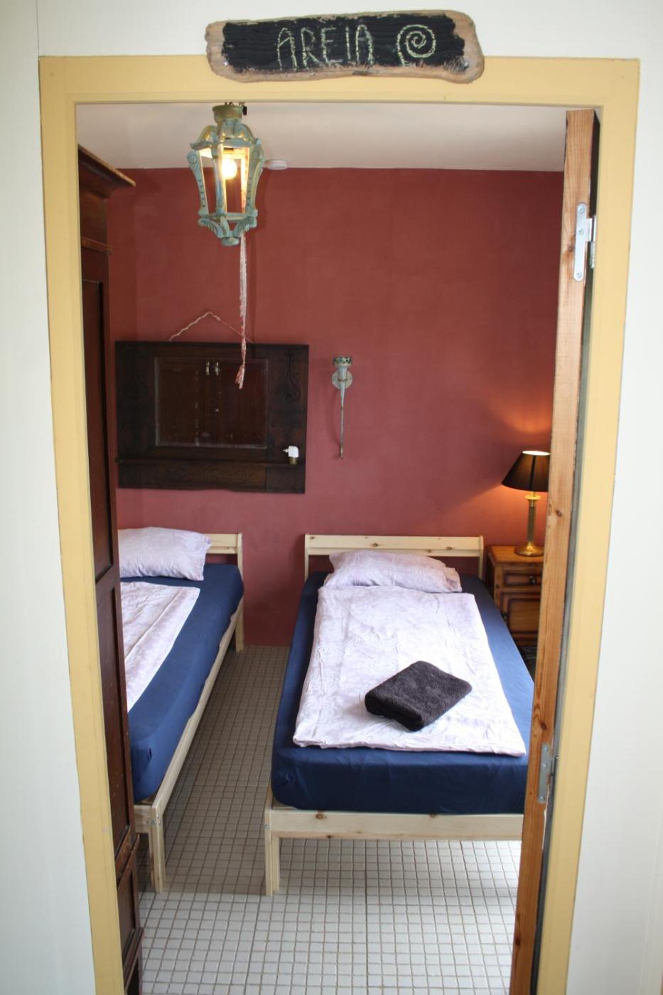 Quarto Twin com Casa de Banho Partilhada. This room has a private entrance ad includes 2 single beds and has access to shared bathroom facilities. ;